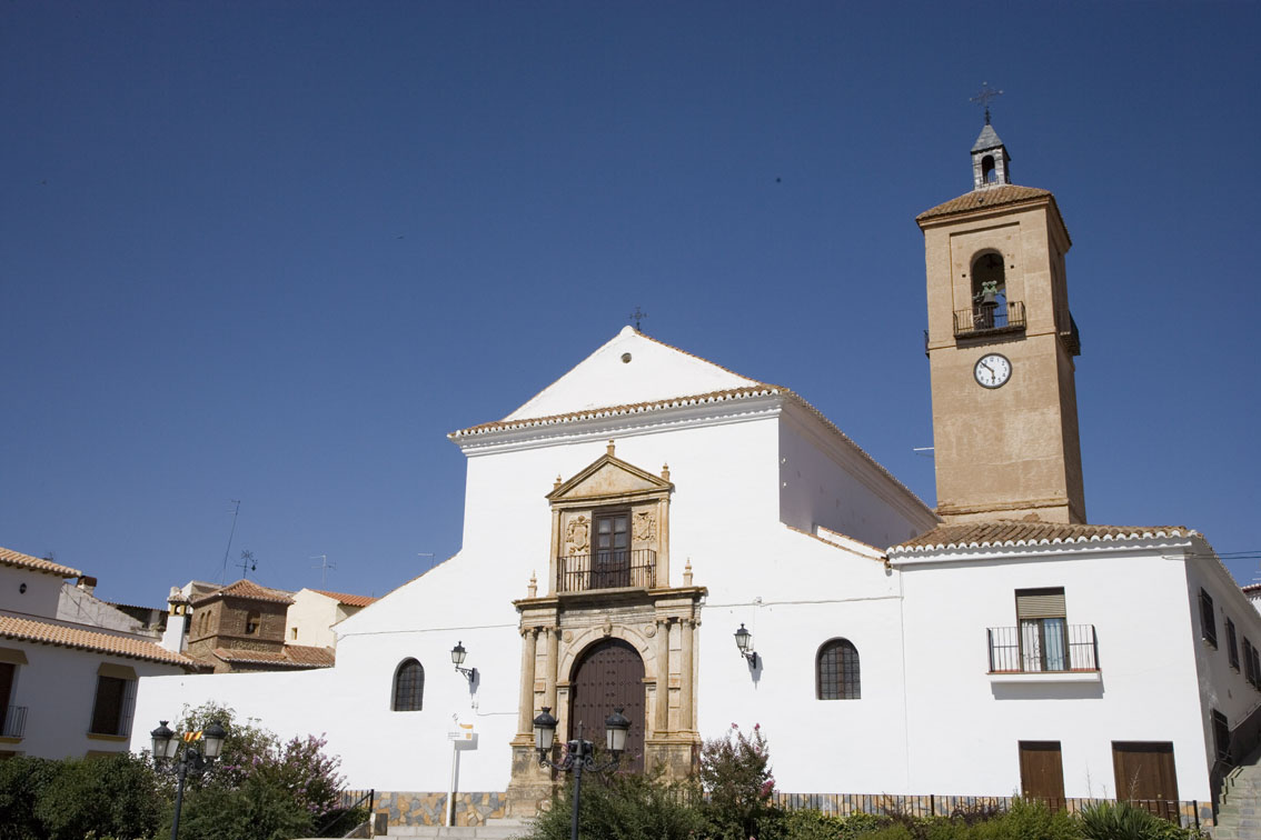 Dirigida en 1545 por el alarife Francisco Roldán y ejecutada por Francisco Heredia, la obra de esta iglesia fue concluida en 1561 por Baltasar de la Hoya, discípulo de Diego de Siloé. Es una iglesia basilical de cruz latina, con tres naves y presbiterio, cuyo artesonado es posiblemente mudéjar. Su portada es de estilo renacentista, realizada en piedra. Sobre todo el conjunto de la iglesia sobresale el remate castellano del campanario, con forma de prisma cuadrangular, con un balcón en cada lado. Justo debajo del balcón que da a la plaza luce un gran reloj. Alberga esculturas, una casulla, una cruz de plata repujada, una custodia y otras reliquias de alto valor artístico del siglo XVIII.